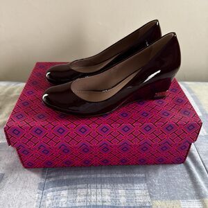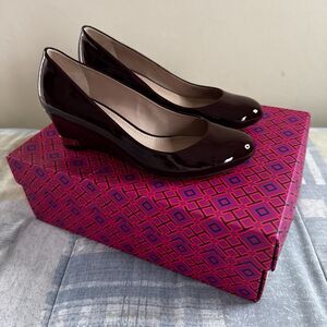 Tory Burch Wine Burgundy Wedge Patent Leather Sole Women's Heels Sz 6M