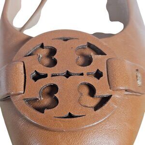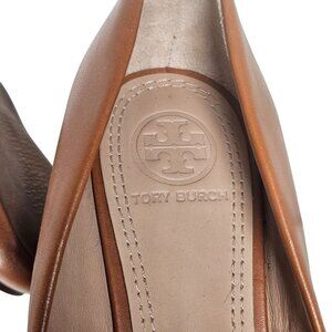 Tory Burch Women Cognac Wedge Pumps 6M Leather Logo, Fall Preppy, Quiet Luxury