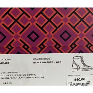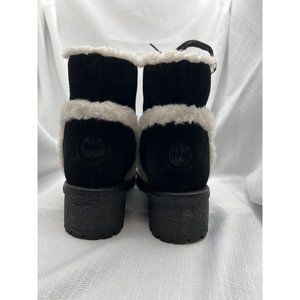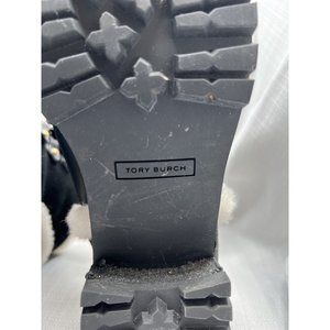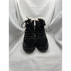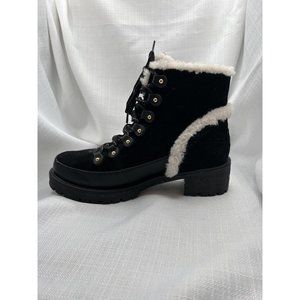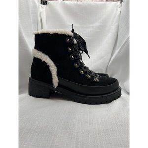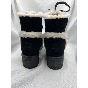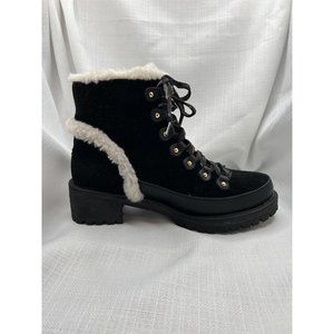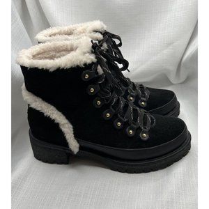 Tory Burch Women Cooper Suede Shearling Lined Lace-up Black Lug Boots size 8