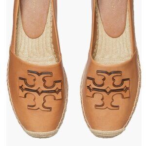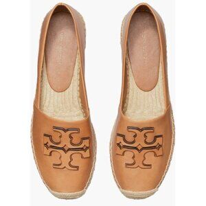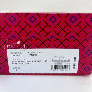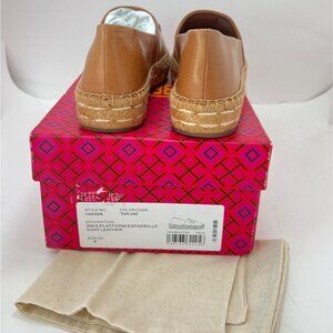 Tory Burch Women Ines Platform Tan Leather Espadrille With Logo Design Size 9