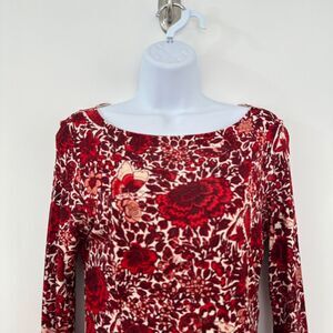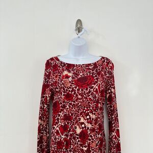 Tory Burch Women Red Butterfly Printed Long Sleeve Boat Neck Dress Size S Spring