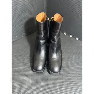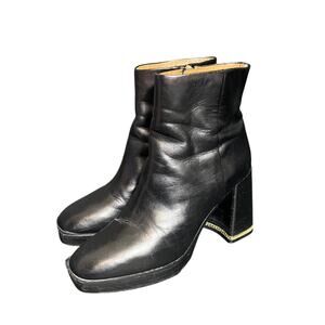 Tory Burch Women Ruby 90 Link Chain Black Leather Chunky Boots size 8.5