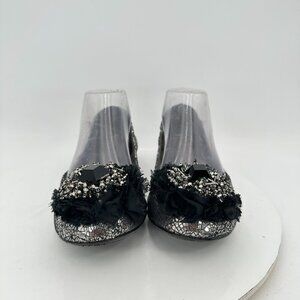 Tory Burch Women Size 7.5M Scrunch Amelia Crystal Silver Ballet Flat Shoes