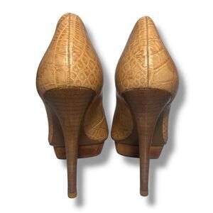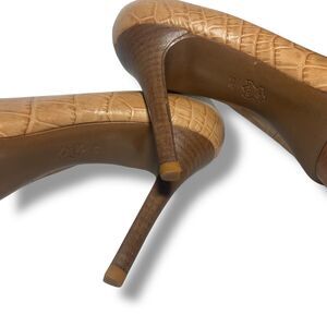 Tory Burch Women Tan Brown Croc Embossed Leather Platform Pumps Heels Size 8 M