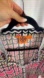 Short tunic in silk organzine with geo pattern pink / fuchsia / black / white / black with silver piping mini bottle around the neck with hook x front closure, cuff with button