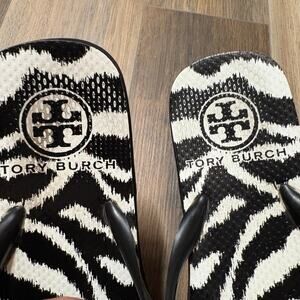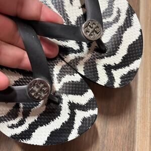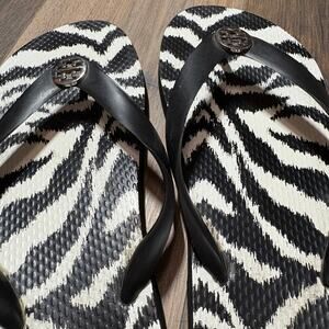 Tory Burch Women’s 7/7.5 Zebra Print Flip Flops Sandals Black White Thongs