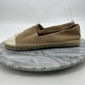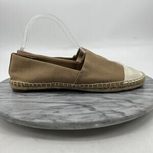 TORY BURCH WOMENS 9 SHOE BISON COLOR BLOCK CAP TOE ESPADRILLES EMBROIDERED LOGO