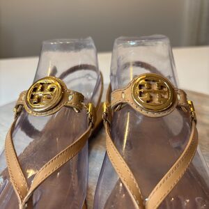 Tory Burch Women's Ali Thong Royal Tan Leather Sandals with Box US Size 7.5 $195