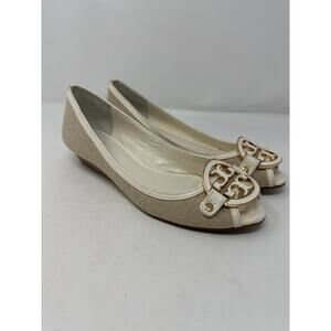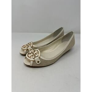 Tory Burch Women’s Amanda Open Toe Demi Metal Monogram Wedge size 9.5