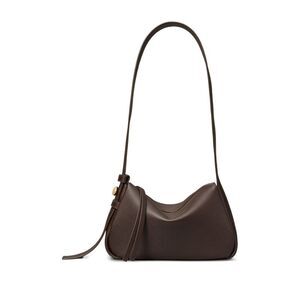 dark brown pebble leather zip fastening long shoulder strap gold-tone buckle tassel detail Romy small leather shoulder bag DEPTH: 7.8 Centimetres. HEIGHT: 14.0 Centimetres. WIDTH: 23.0 Centimetres.