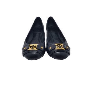 Tory Burch Women's Black Leather Clines Gold Buckle Slip On Flats 5
