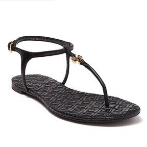 Elevate your wardrobe with these classic Tory Burch Marion sandals. Crafted from premium black leather, they feature the signature Tory Burch logo medallion for a timeless and versatile look. The sleek design makes them perfect for both casual wear and dressier outfits, while the comfortable fit ensures all-day wearability.