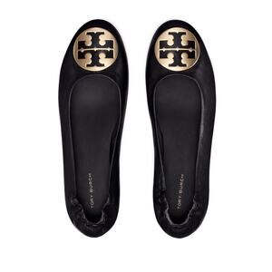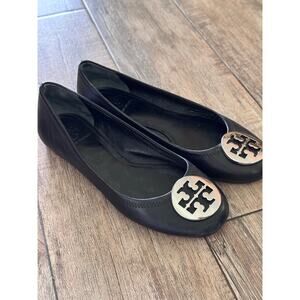 Tory Burch Women's Black Leather Reva Ballet Flats Size Size 7.5