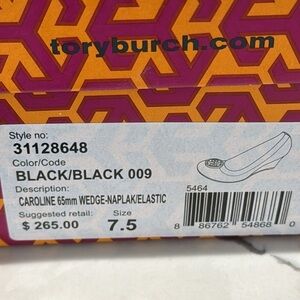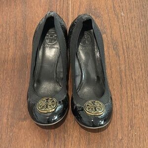 Tory Burch Women’s Black Patent Leather Caroline Wedges Size 7.5