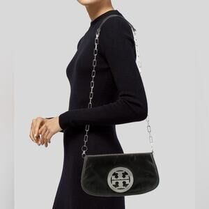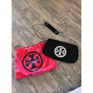 Tory Burch Women's Black Reva Flap Chain Leather Logo Crossbody Bag