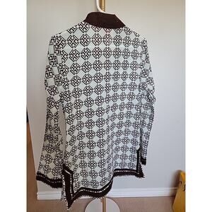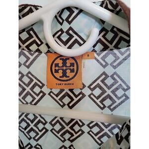 Tory Burch Women’s Blue & Brown Trim Boho Logo Print Long Sleeve Tunic 8