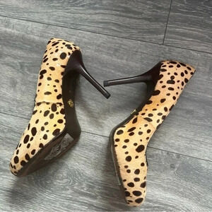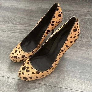 Slip-On Design -Round Toe -4” Heels -Tory Burch Logo on Bottom of Shoes -Tan with Brown Spots (Cheetah Pattern) -Concealed Platform -Leather Upper, Lining and Soles -Bovine Hair -Excellent Pre-Loved Condition -No Obvious Flaws Heel Height in Inches-4