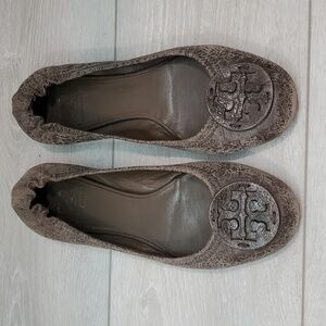 Tory Burch Womens Classic Reva brown distressed Leather Flats Ballet shoes sz 9M