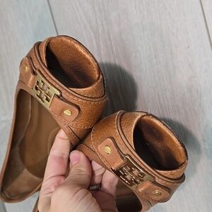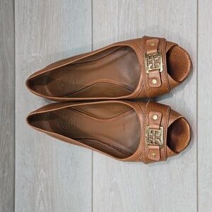 Tory Burch Womens Clines Logo Open Toe Flats Loafer Slip on shoes sz 10M