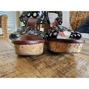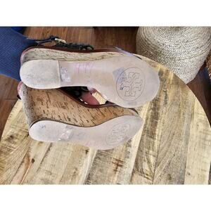 Tory Burch Women's Daisy Floral Platform Wedge Perf Leather Sandal Size 5.5