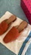 Chic Tory Burch mules in terracotta suede. Perfect blend of style and comfort.