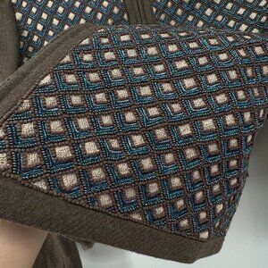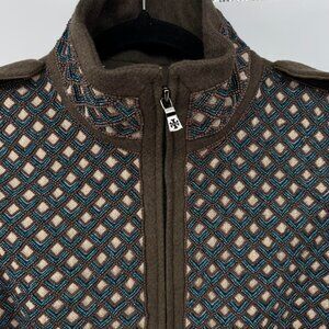 Tory Burch Women’s Embroidered Wool-Blend Zip Jacket Size 10 Olive Green Texture