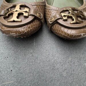 Tory Burch Womens Flat Shoes Olive Green Snake Skin Ballet Flats SIZE 8.5M