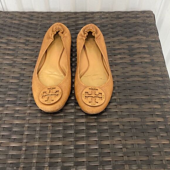 Tory Burch women flats size 9.5 in good pre owned condition normal wear and tear see pictures for more details scuffed up on the tips of the toes and the back of the heels, overall and great shape