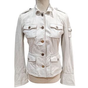 Tory Burch Women's Genuine Leather Utility Military Jacket in White Size 2