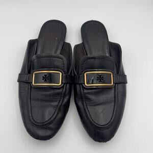 Tory Burch Women's Georgie Backless Loafers Black Leather Size 7.5 M