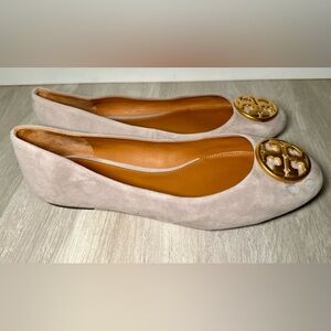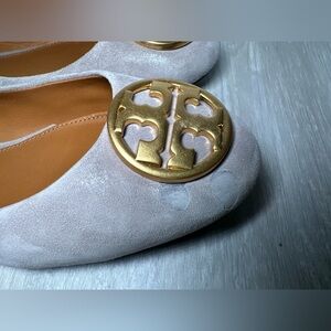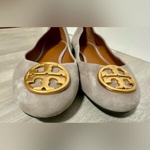 Tory Burch Womens Gray With Gold Emblem Leather Ballet Flats Shoes Sz 9