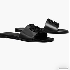 Tory Burch Women's Ines Leather Flat Slide, Black, 6