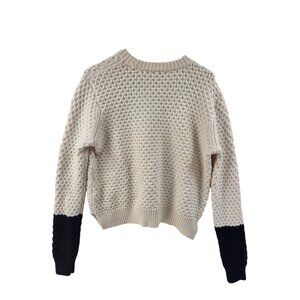Tory Burch Womens Ivory Merino Wool Colorblock Crewneck Sweater Top M Classic