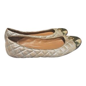 Tory Burch Women's Kaitlin Quilted Metallic Ballet Flats Size 9.5M Silver/Gold