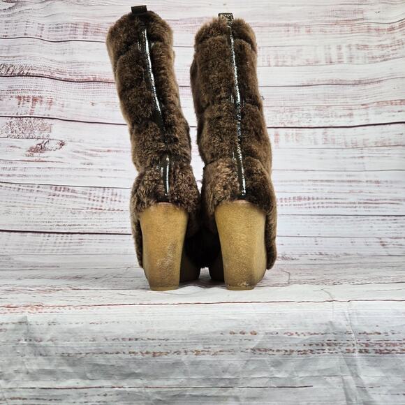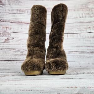 Tory Burch Women's Kiki Brown Sheep Shearling Boots Size 8 Wedge Heeled Comfort
