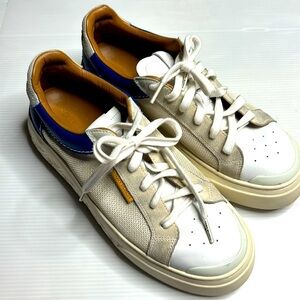 off-white/royal blue front lace-up fastening round toe branded insole flat sole