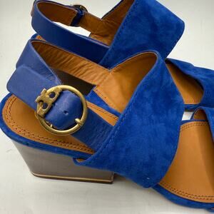 Tory Burch Women's Leather Selby Block-Heel Sandals Blue Size 9