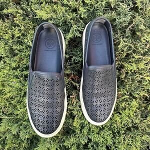 Tory Burch Women’s Lennon Laser Cut Perforated Slip On Sneakers Size 8 Blue
