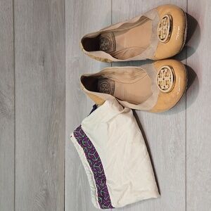 Tory Burch Womens Logo Leather Loafer Ballet Flats shoes sz 7M