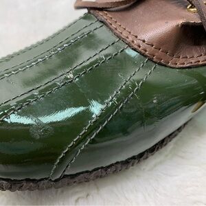 Pre-owned authentic Tory Burch Womens Green Brown Duck Shoes Size 8. Shoes have scuffing and marks. Please look at pictures for better reference. Happy Shopping! JAN23. Z4