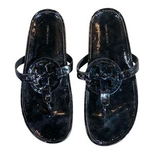 Tory Burch Women's Miller Cloud Lug Sandals Perfect Black/Petunia Patent 10.5