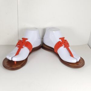 Tory Burch Women's Moore US 7M Corral Leather Slip On Flat Thong Sandals Shoes