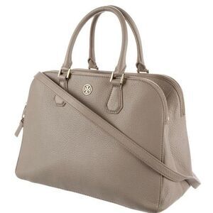 ✨Tory Burch Women's Natural Robinson Pebbled Triple-Zip Tan Satchel✨