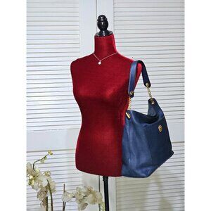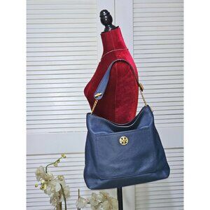 Tory Burch Women's Navy Blue Leather Chelsea Chain Hobo Shoulder Bag Sz L 2713