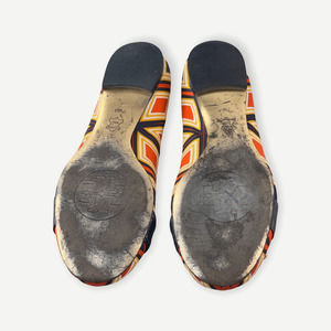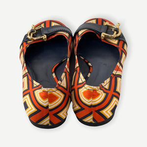 Tory Burch Womens Noel Ballet Flats Shoes Red Beige Geometric Slip On 7.5 M