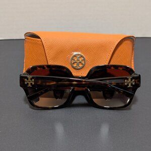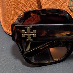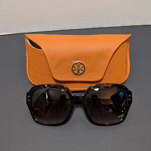 Elevate your look with these chic Tory Burch (TY7143U) oversized square framed sunglasses in a classic tortoise pattern. Featuring gradient lenses and the signature Tory Burch logo at the temples, these shades offer both timeless style and UV protection. Comes with the orange case and slip.