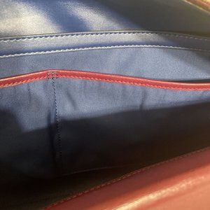 This Tory Burch Parker Tote Bag in Imperial Garnet/Midnight Swim is a stunning accessory that is perfect for women who love to make a fashion statement. The bag features a solid pattern and a zip closure, which makes it easy to access your belongings. The exterior of the bag is made of high-quality leather, and it comes with a red handle/strap and gold hardware color that adds a touch of elegance to the tote.