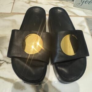 Tory Burch Women’s Patos Platform Sandals Slides w/ Gold Medallion Sz 9 Leather