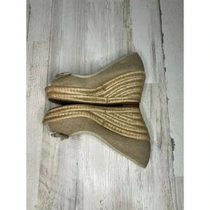 Tory Burch Women's Peep-Toe Espadrille Wedge Sandals Size 7 Tan Brown