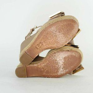 Tory Burch Womens Penny Bow Platform Wedge Sandals Beige Leather High Buckle 5 M